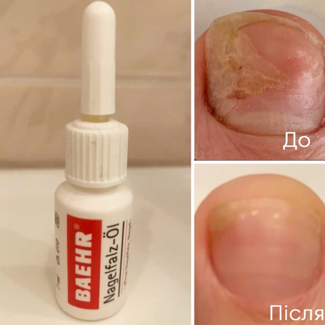 BAEHR oil with wheat germ is a therapeutic and preventive agent for the fight against onycholysis and daily care of nails and skin. Baehr onycholysis oil improves the structure, gives a healthy and well-groomed appearance, restores fragile, thin, brittle and peeling nails. Wheat germ, amino acids included in the composition, trace elements and vitamins help to cope with fungal damage and grow beautiful nails.